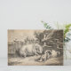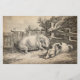 Este diseño tiene un grabado con un lavabo gris y acuático del artista inglés George Morland (1763-1804). Muestra dos cerdos durmiendo en paja. Es una hermosa escena de la vida rural. Dependiendo de cómo se recorte la imagen para crear un ajuste perfecto para este elemento en particular, puede ver las iniciales G.M. en una de las publicaciones de la cerca. También puede ser capaz de ver un pájaro particularmente audaz parado orgulloso sobre otro puesto de cerca.