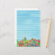 Papel de bonito azul floral, con arvejas suaves y azules, mezcladas con pinos púrpura y mauve everlastres dibujados con tinta y pintados con acuarela.