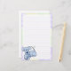 ¡Efectos de escritorio adorables del perro del kawaii! Un perrito azul del dibujo animado está masticando feliz en un hueso y está meneando su cola. El dibujo lindo del amante del mascota tiene una frontera del lunar con un arco iris de colores. ¡Los productos coloridos son perfectos para que los adultos o los niños escriban encendido! Gobernado en lila.