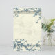 Efectos de escritorio con los árboles florecientes y pájaros delicados, azul y beige.