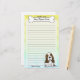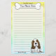 Efectos de escritorio de Kawaii Basset Hound de la diversión con una raza del perro del dibujo animado en la esquina inferior derecha. La porción superior se puede personalizar inmediatamente con su nombre dentro del hueso grande del perrito. El fondo de la frontera y del papel es un amarillo al azul se descolora.