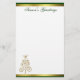 Papel de escribir festivo del día de fiesta, con los gráficos del oro elegante mirando navidad bordado, la parte inferior, y las rayas del verde y doradas el top y la parte inferior de la página. Los saludos de la estación en texto verde de la escritura en el top. Personalizar para añadir el texto adicional o el uso en su propia impresora en casa. Papel precioso para su letra anual del navidad.