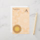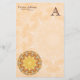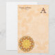 La mandala de la renovación es un diseño complejo de la explosión del sol en colores amarillos y anaranjados de oro brillantes con tactos del azul. Este diseño caleidoscópico de diez puntos es lleno de textura, y da la impresión de un sol ardiente. - El diseño en estos efectos de escritorio está contra un color claro, fondo texturizado, perfecciona para escribir correspondencia y notas rápidas a otras. Completamente adaptable con su nombre, un pequeño refrán, cita, o título de la compañía, y una inicial del monograma. Una idea muy bonita del regalo para ésos que amor de escribir a sus amigos y amigos por correspondencia, y las que quieren a las notas de la oficina de intercambio con estilo.