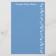 Columna alegre de las flores blancas en el papel azul. Gran regalo--personalice con su nombre.