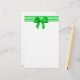 Papel de escribir festivo del día de fiesta, con el funcionamiento verde de las rayas horizontal en la cima de los efectos de escritorio, y un arco verde bonito grande. Personalizar para añadir el texto adicional o el uso en su propia impresora en casa. Papel precioso para su letra anual del navidad.