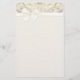 Las bonitas y elegantes rosas blancas y el arco de satén adornan la parte superior de este diseño de papelería. Impresión texturada sutil en tono marfil en el área inferior.