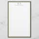Create your own personalized stationery paper with monogram initials in elegant typography alongside custom name and simple border design in olive green color.