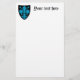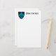 Papel blanco elegante y sencillo con un azul turquesa Fleur De Lis sobre un escudo negro. Añade tu nombre.