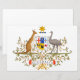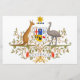 Este diseño presenta el escudo de armas australiano. Australia es un país soberano que comprende el continente australiano, la isla de Tasmania y numerosas islas más pequeñas. La capital de Australia es Canberra, y su ciudad más grande es Sydney. Las otras principales zonas urbanas del país son Melbourne, Brisbane, Perth y Adelaide. El escudo de armas de Australia, oficialmente denominado Escudo de Armas del Commonwealth, es el símbolo oficial del Commonwealth de Australia. Un canguro y un emu sostienen un escudo, que representa símbolos de los seis estados de Australia, que son animales nativos de Australia. La Estrella de la Commonwealth, de siete puntas, sobre el escudo también representa los estados y territorios de Australia, mientras que varios emblemas florales aparecen debajo del escudo.