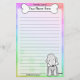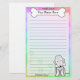 Papelería divertida Kawaii Bedlington Terrier con una raza de perro de dibujos animados en la esquina inferior derecha. La parte superior puede ser personalizada instantáneamente con su nombre dentro del hueso del perro grande. Borde y fondo de papel son un arcoiris pastel.