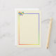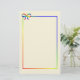 Fondo de color crema con un borde arco iris y un arco en la parte superior izquierda de la papelería. ©jlp