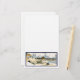 Estacionamiento con un ilustracion vintage de un libro de cuentos de un niño sobre la arena en la playa. Su perro nada lejos en las olas.