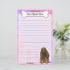 La papelería divertida Kawaii Bloodhound tiene una linda raza de perro dibujado en la esquina inferior derecha. Personalice instantáneamente este diseño de fondo reemplazando "Su nombre aquí" dentro del hueso del perro. El fondo es un bello desvanecimiento rosa a morado.