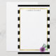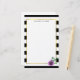 La moderna papelería floral cuenta con rayas blancas y negras de moda, con una flor de color morado de color marrón y detalles en oro falso. Personalizar con un monograma, nombre o texto de su elección!