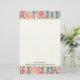 Papel de piedra con un hermoso patrón de flores rosadas de bonito sobre un patrón a rayas compuesto de rayas azules y cremas. Un marco rectangular con un borde falso de Relieve metalizado dorado sobre la parte superior para que escriba dentro. Personaliza con un nombre y una dirección.