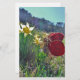 Hada con alas rojas y vestido morado Huele en los Daffodils amarillos Flores Hadas y Foto del artista Sandy Closs Fairy, hadas, hadas, pixie, pixies, fantasía, flores, mariposa , mariposas, rojo, amarillo, morado,cuento de hadas de primavera, hadas