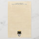 Papel de escritura personalizado con líneas de papel para una escritura sencilla. Un lindo gatito de ángel blanco y negro con un halo dorado sobre su cabeza, dibujado al estilo personalizado. El fondo es un color pergamino cremoso.