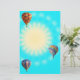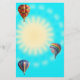 Cielo azul brillante, sol brillante suave con halo y globos de aire caliente de colores vivos que flotan, suben y salen. Papelería alegre para sus notas y cartas.