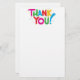 Brillante, colorido "GRACIAS!" en movimientos del cepillo y salpicado con descensos festivos de la pintura.