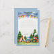 This whimsical letter paper, titled "Happy Camper Notes," is perfect for young adventurers to jot down their camp memories. It features a joyful camping scene at the bottom with colorful tents, friendly vehicles, and a warm campfire. The top is adorned with a string of cheerful flags against a starry night sky, leaving plenty of lined space for personalization and storytelling. Whether for writing home or keeping a diary of outdoor escapades, this paper brings a touch of the wilderness to every word.