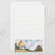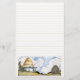 Papel de líneas ligeras con una colmena feliz con abejas zumbantes en un pintoresco paisaje de granja de arte vintage.