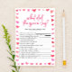 This is a Red Pink Hearts What Did The Groom Say? Bridal Shower Game.