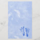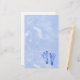 Huellas lindas del bebé contra un fondo azul en colores pastel.