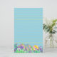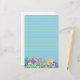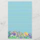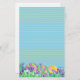 Una papelería en línea azul y amarilla para Pascua con un parche de huevos decorados entre las flores de crocus púrpura ilustradas con acuarela. Papelería festiva para cartas de vacaciones, cartas de correspondencia con bolígrafo, periodismo y más!