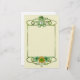 El diseño de papel dulce de temática irlandesa presenta un fondo crema de textura ligera con un elegante borde verde giratorio. Oso de peluche irlandés en gorra y olla de oro con acentos de Shamrock.