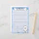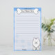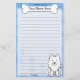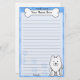 El papel Cute Kawaii Samoyed tiene un adorable perro de caricatura en la esquina inferior derecha. personalizar instantáneamente esta papelería reemplazando "Su nombre aquí" dentro del hueso del perro. El fondo es un bonito azul. ¡Perfecto para los dueños Samoyed!