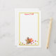 Estacionería con mi diseño original de un lindo pavo con hojas de arce volando a su alrededor.