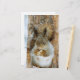 El diseño presenta una fotografía de primer plano de una ardilla linda con sus patas juntas. Está parado en un paisaje nevado con una bola de nieve entre sus patas. Es una escena completamente adorable.