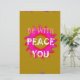 Inspirador "Peace Be With You" Vector Design Art Print Presentando el Vector de diseño Art Print "Peace Be With You", una pieza muy bien hecha que irradia calidez e inspiración, perfecta para cualquier espacio que busque un mensaje positivo. Los colores cálidos y el borde floral decorativo crean una hermosa y apacible pieza, perfecta para añadir un toque de tranquilidad a cualquier espacio. Descripción: Esta obra de arte destaca la frase "Paz sea contigo" que aparece en el centro. El texto está estilizado y rodeado por un borde floral decorativo, creando una composición equilibrada y simétrica que atrae la atención hacia el mensaje ascendente. Un fondo de color sólido proporciona un contraste claro, mejorando el diseño general. Colores: Amarillo mostaza/Verde oliva: El color de fondo dominante ofrece un entorno cálido y acogedor, evocando un sentido de confort. Rosa/Magenta: Se utiliza para el gráfico central tipo Sol y la superposición de texto, este color vibrante añade energía y sirve como punto focal. Blanco/Crema: Empleado para delinear el texto, proporcionando contraste y mejorando la legibilidad. Púrpura y Verde (Borde): El borde floral tiene flores moradas y hojas verdes, creando un contraste visualmente atractivo contra el fondo amarillo. Imagery/Motifs: "La paz sea contigo": Esta frase central transmite una bendición universal de paz y buena voluntad, lo que la convierte en una expresión inspiradora de deseos positivos. Gráfico central Sol/Burst: El gráfico rosa detrás del texto se asemeja a un sol o ráfaga de luz, simbolizando positividad, esperanza y calidez espiritual. Borde floral: El borde decorativo incluye flores y hojas estilizadas, añadiendo elegancia y un elemento natural al diseño. Diseño de vectores: Las líneas limpias y los detalles nítidos sugieren un diseño basado en vectores, que le da a la imagen un aspecto nítido y pulido. Impresión general: La impresión de arte de diseño vectorial "Peace Be With You" es cálida y inspiradora, transmitiendo un mensaje pacífico y positivo. La combinación de la frase edificante, los colores vibrantes y el borde decorativo crea un diseño visualmente atractivo y memorable que puede mejorar cualquier espacio. Perfecto para: Decoración en casa: Agradable adición a salones, dormitorios, o espacios de meditación, promoviendo un ambiente sereno. Regalos: Un regalo ideal para amigos, familiares o cualquier persona que aprecie el arte edificante y inspirador. Espacios comunitarios: Ideal para lugares de culto, salas de curación o centros de bienestar, fomentando sentimientos de paz y buena voluntad. Ventajas de Comprar con Nosotros: Opciones de Personalizable: Escoja entre varios tamaños o opciones de encuadernación para adaptarse perfectamente a su estilo de decoración. Garantía de calidad: Garantizamos la impresión y los materiales de alta calidad para un acabado impresionante y duradero. Envío rápido: la entrega fiable garantiza que el trabajo de arte llegue a tiempo. Imaginen el diseño vectorial de arte "Peace Be With You" (La paz sea contigo) que aporta calidez e inspiración a tu espacio. Explore nuestra colección de Achempong Zazzle para descubrir esta y otras notables piezas. ¿Te gusta este diseño? ¡Compártelo con amigos y familiares!