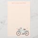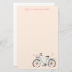 Materiales de escritura con una cita optimista y positiva sobre vida. El refrán lee "vida es un paseo hermoso." Ilustrado con una bicicleta azul con una cesta de flores en el frente y las mariposas que agitan alrededor.