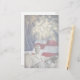Foto de la estatua de Abraham Lincoln en el monumento a Lincoln en Washington DC con hermosos fuegos artificiales y la bandera de Estados Unidos en el fondo. Gran imagen compuesta para celebraciones de festividades patrióticas norteamericanas.