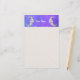 Esta almohadilla de papel es blanca con un borde de cielo morado en la parte superior con dos lunas de media luna blanca con decoraciones en estrellas amarillas, violetas, azules y doradas junto con rostros. Personalizar su nombre o texto con la plantilla.