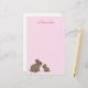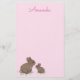 Qué lindos conejitos pintados de forma realista con narices rosas sentados en un trozo de trébol en este papel rosa. Personalízalo con la plantilla proporcionada con su nombre o frase.