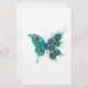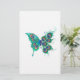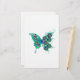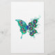 Mariposa pintada de forma artística, ficticia, verde, detallada, con plumas verdes, hermosas, de pavo real sobre fondo blanco.