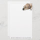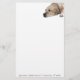 Estacionería con una fotografía de un perro negro rodiano. Esta belleza de 90 libras no estaba muy contenta con una cámara atascada en su cara mientras estaba en el suelo de la sala de estar.