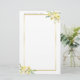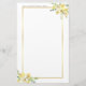 Este estadio floral amarillo bonito personalizado está enmarcado por un hermoso rectángulo dorado bordeado de hojas verdes y una rosa amarilla. Este precioso papel personalizado claro es perfecto para la correspondencia de primavera o verano.