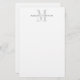 Este Stationery presenta un diseño limpio y minimalista con una gran carta gris claro en el serif centrada cerca de la parte superior. Sobre ella se encuentra una línea de texto más pequeña en una fuente sans-serif moderna, creando un aspecto elegante y elegante. El color blanco y la sencillez de la disposición le confieren un aspecto refinado y profesional.