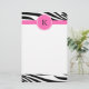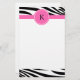 Patrón de cebra en blanco y negro monogramado. Una banda rosa caliente y un círculo rosado caliente en el que se puede poner la inicial.