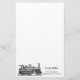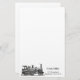 Ilustracion de locomotora/motor de tren blanco y negro vintage con texto de personalizable de 3 filas para nombre y dirección u otra información personalizada
