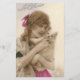 Mujer joven hermosa con su pequeño perro blanco en una postal real francesa antigua de la foto para el día del St. Catherine. Tengo personalizado restaurado la imagen.