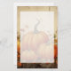 Estacionería con un ilustracion rústico con calabazas naranjas y hojas de otoño. Una vibración de otoño.
