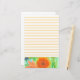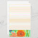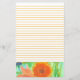 Papel colorido y alegre de naranja, adornado con un borde floral, con una margarita naranja brillante y una flor rosa de lirio en plena floración, con una variedad de verduras y una flor violeta en el fondo. Si buscas un juego de papel, tengo otra variedad de papel de coordinación, sobres y pegatinas en mi tienda.