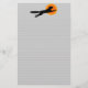 Estacionería con un gato negro que sobrevolaba una luna naranja y líneas grises opcionales. Haga clic en Personalizar para agregar su nombre o mensaje, e incluso guarde el diseño para más adelante.
