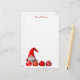 Esta divertida papelería navideña presenta una linda imagen de un pequeño gnomo blanco barbudo con un sombrero rojo de Santa que se le cae por encima de los ojos. Está parado detrás de una hilera de bombillas de árbol rojo brillantes decoradas en oro y plata. El texto rojo de arriba dice "¡Feliz Navidad!"
