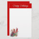 Papel de escritura festivo, hecho en blanco, con bellas obras de arte de un cardenal rojo sentado en una rama de berry. Feliz Navidad con un texto de guión grande, en la parte superior, está listo para tu saludo. Personalizar para agregar texto adicional o usar en su propia impresora en casa. Encantador artículo para tu carta anual de Navidades.