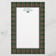 Papelería personalizada con un borde de un patrón enchapado en verde oscuro, marrón y Navidades dorados. Ideal para boletines de noticias de vacaciones y notas de agradecimiento. Las etiquetas de dirección de retorno coincidentes y los pegatinas de sello para sobres con forma de estrella están disponibles.